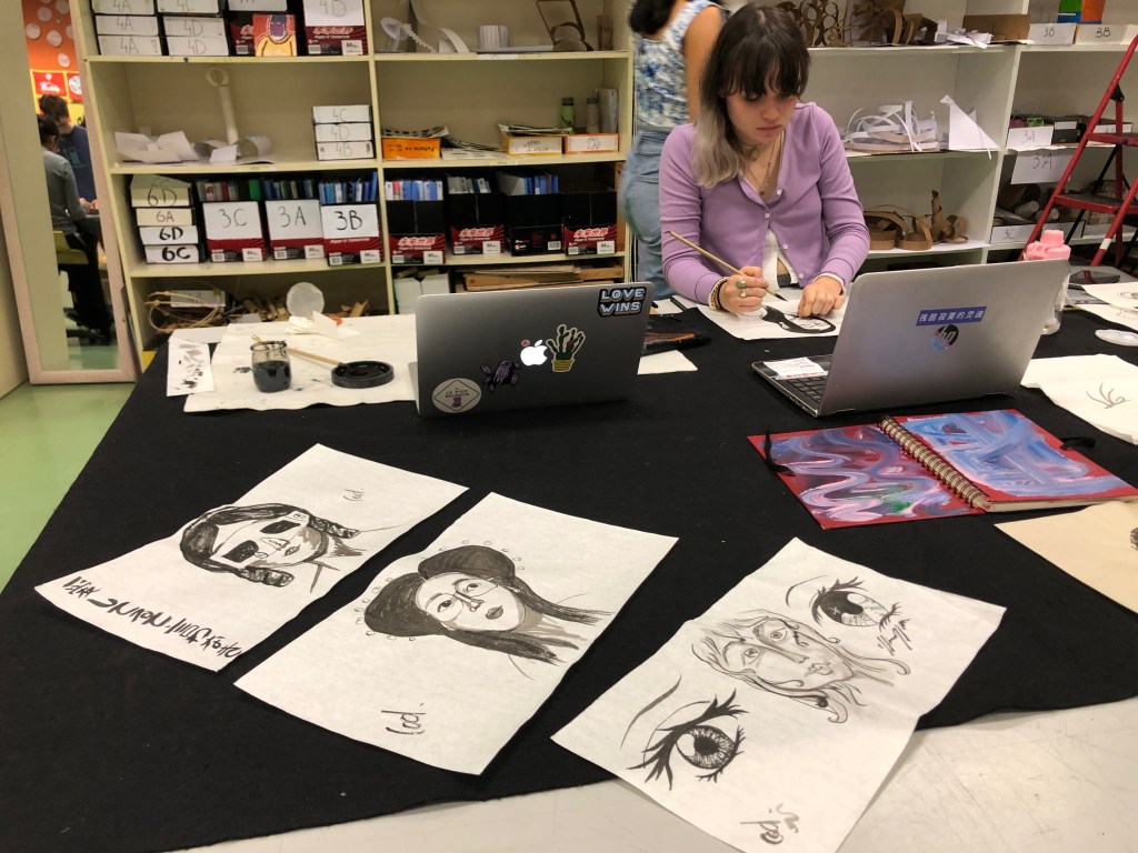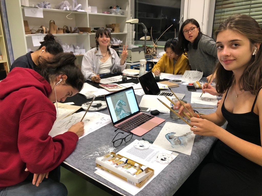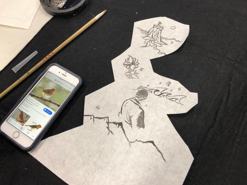 - A cela s’ajoute l’histoire de l’art en Chine avec ses acteurs contemporains et un travail d’expérimentation des médiums traditionnels (encre de chine, céramique, ombres chinoises, garvure…).